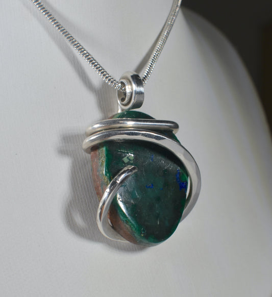 • Azurite/Malachite Handmade Stone Pendant Wrapped in Sterling Silver