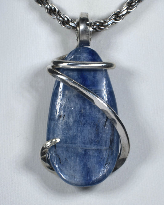 Blue Kyanite Handmade Crystal Pendant Wrapped in Silver