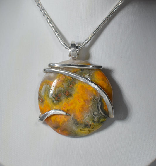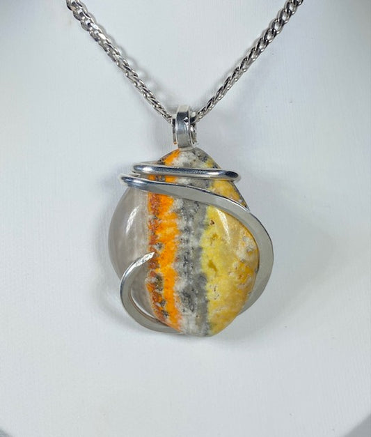 Bumblebee Jasper Handmade Stone Pendant Wrapped in Silver