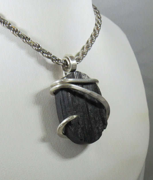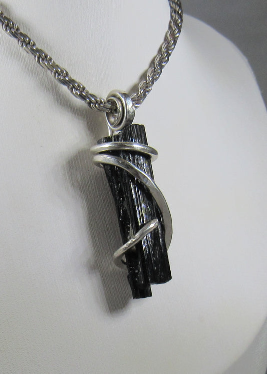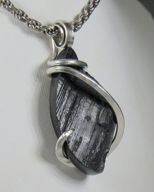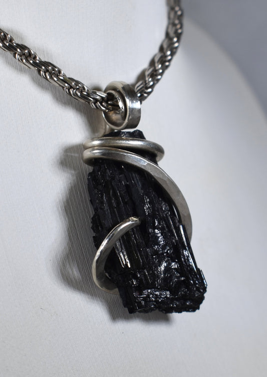 Black Tourmaline Handmade Stone Pendant Wrapped in Silver