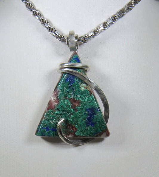 Azurite and Malachite Handmade Stone Pendant Wrapped in Silver