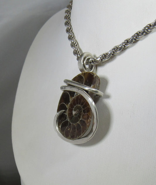 • Ammonite  Pendant  Hand Wrapped in Silver