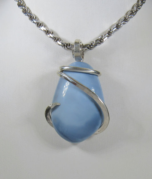 Blue Opal Handmade Stone Pendant Wrapped in Silver