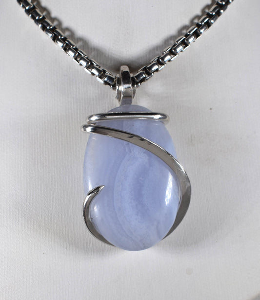 Blue Lace Agate Pendant Necklace 925 Sterling Silver