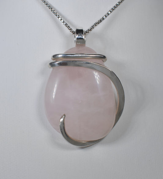 Star Rose Quartz Handmade Stone Pendant Wrapped in Silver