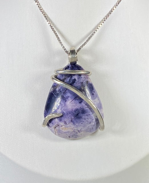 Tiffany Stone Handmade Stone Pendant Wrapped in Silver