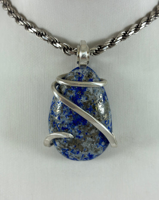 Lapis Lazuli and Pyrite Handmade Stone Pendant Wrapped in Silver