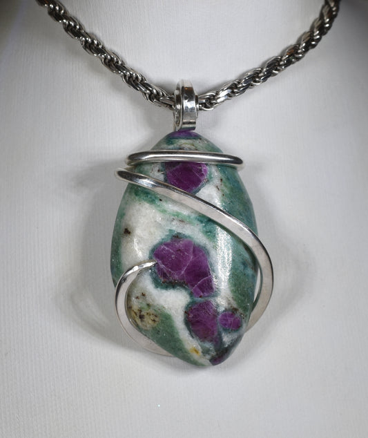 Ruby in Zoisite Handmade Stone Pendant Wrapped in Silver
