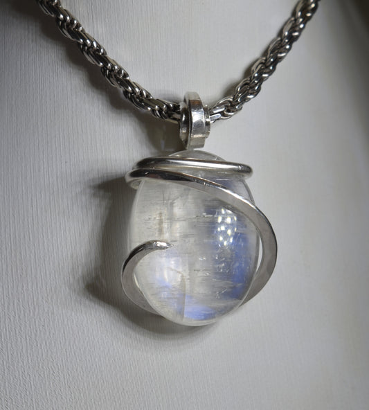 Rainbow Moonstone Handmade Crystal Pendant Wrapped in Silver