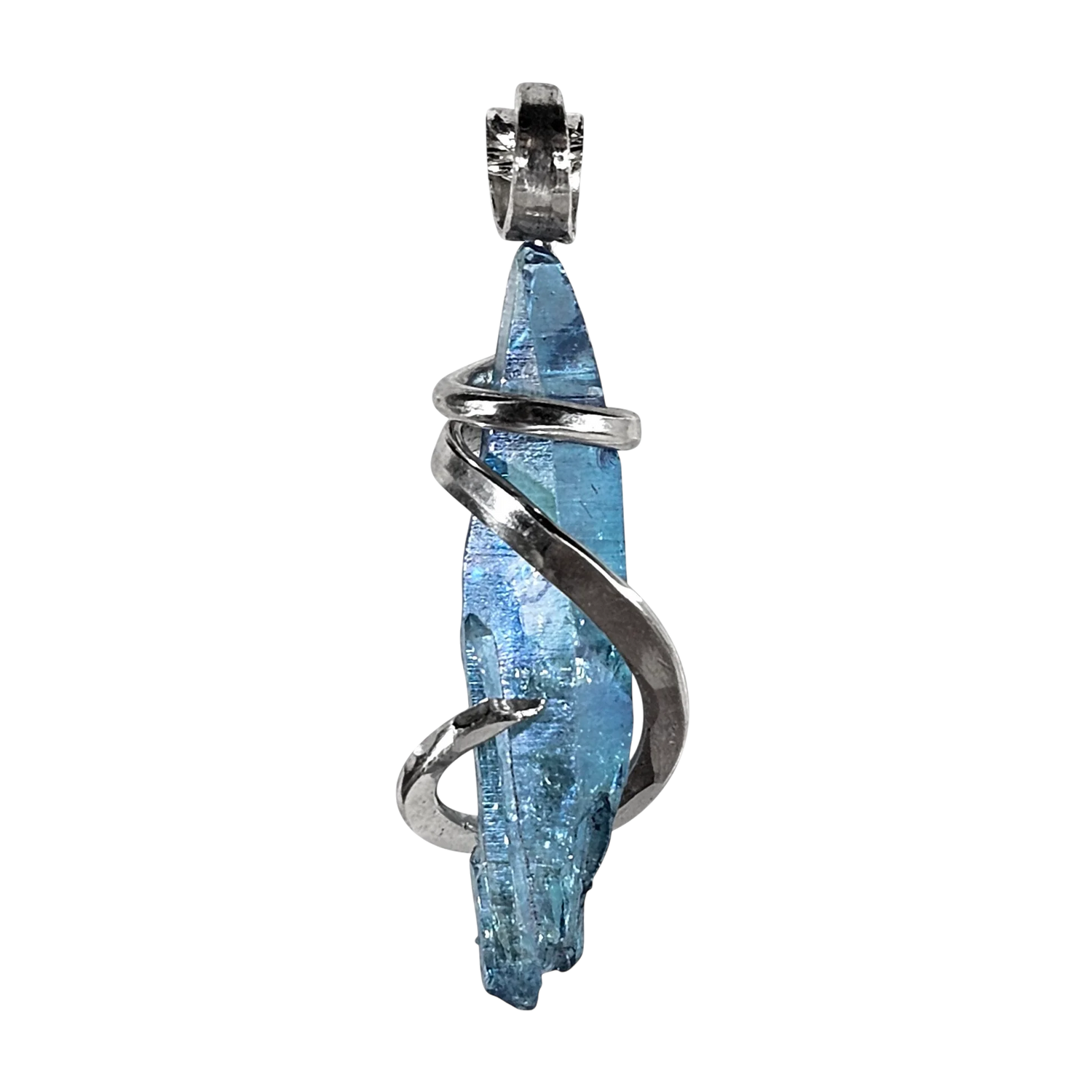 Pure gold is bonded to quartz crystals to form Aqua Aura, first created by scientist Steven Katona in 1983 through vapor deposition. This crystal is associated with the Throat chakra and brings calmness, communication and auric cleansing. It harmonizes the chakras, psychically protects the subconscious, increases intuition, and emotional balance, and represents water in the unconscious. Used in meditation and energy healing, Aqua Aura Quartz is good for self-expression, creativity, and spiritual growth.