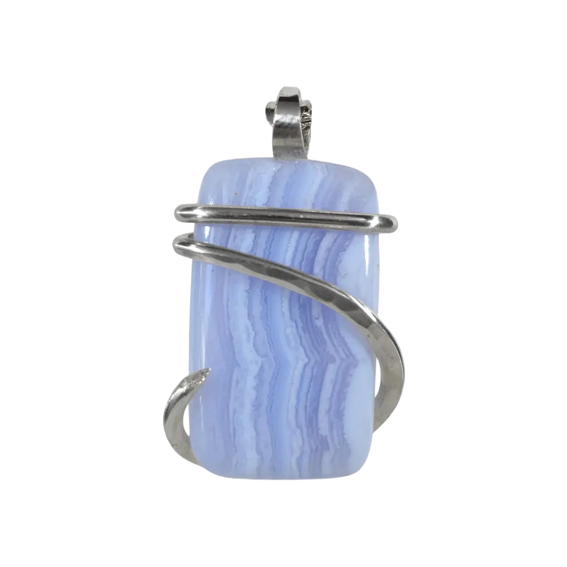 Blue lace agate has soft blue color and fine banding, and is considered a relaxing stone. It's considered the "Stone of Communication," making people feel more confident and articulate - good for public speaking. Sometimes called the "Stone of the Diplomat," it keeps words clear of anger. Blue lace agate has a lower vibration frequency and is therefore considered a stabilizing gemstone - either worn as jewelry or carried as a calming stone.