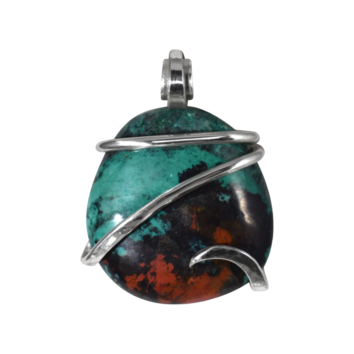 Chrysocolla - a blue-green colorless copper carbonate gemstone - is often mistaken for turquoise. With malachite, turquoise and azurite it sometimes forms the mixed gemstone Eilat stone, mined in King Solomon's mines and Israel's national stone. Theophrastus of Greece named it in 315 B.C. chrysos = gold and kola = glue, as ancient goldsmiths used it to solder gold. Chrysocolla inspired artists from Renaissance painters to modern jewelers. You can find it near large copper deposits in Africa, Mexico and Arizona, where it is called Apache chrysocolla.
