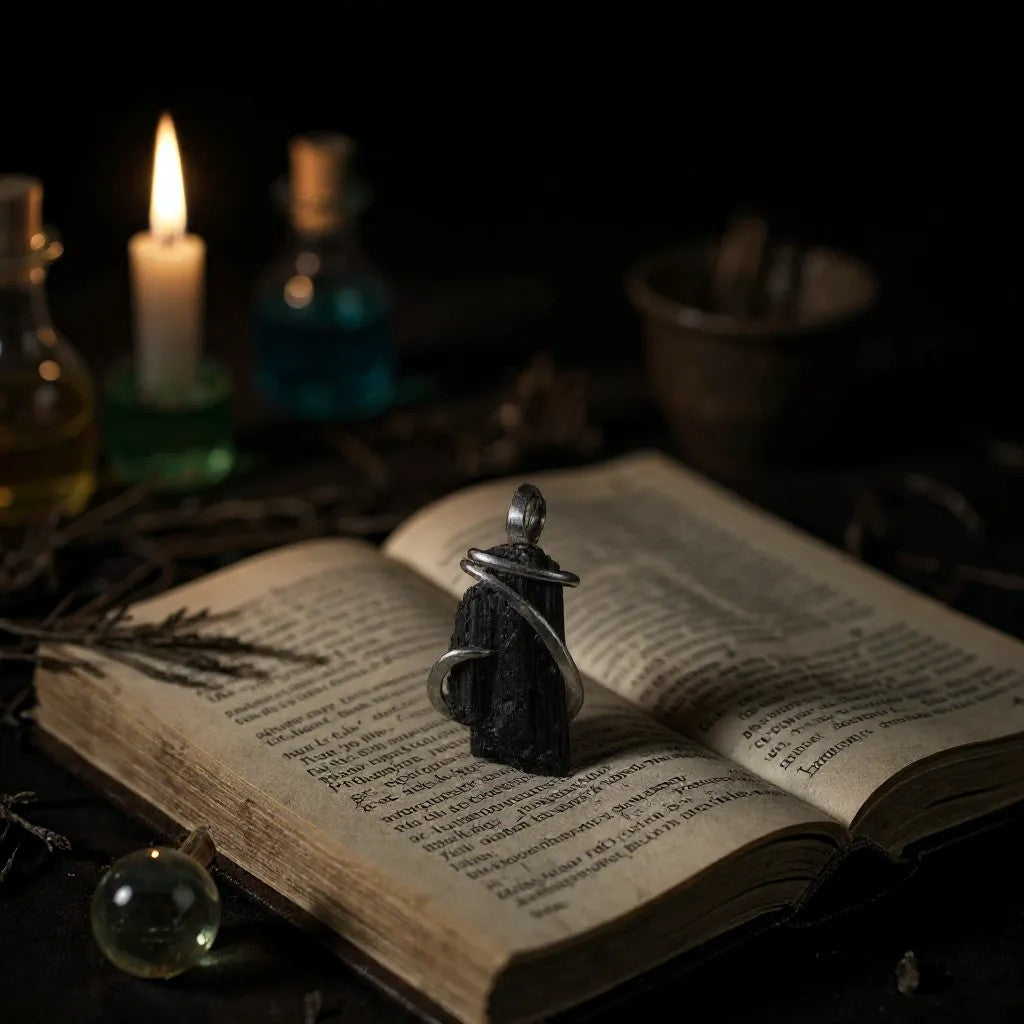 Black Tourmaline Handmade Stone Pendant Wrapped in Silver